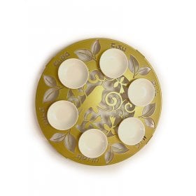 Iris Design, Raised Handmade Seder Plate with Cutout Bird and Leaves – Gold$98.43 -