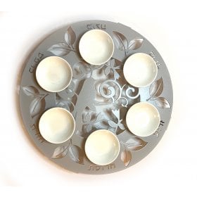 Iris Design, Raised Handmade Seder Plate with Cutout Bird and Leaves – Silver$98.43 -
