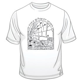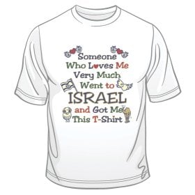 This exciting category has many delightful styles of t-shirts in many sizes and shades.The gentle Dove of Peace design is a beautiful Jerusalem depiction, as is "If I forget thee Jerusalem" and the colorful Jerusalem of Peace emblem with camels, doves, palm trees and more! These items are an unforgettable memento of Israel. Others have State of Israel themes such as the symbol of the Menorah, or the Herzl shirt, not to mention I Love Israel, and who could possible survive without a Ben Gurion shirt? The lovely Safed tee has striking blue shades of the narrow winding streets typical of Tsfas. The angular buildings of Tel Aviv are colored with vibrant hues, suitable to the frenetic pace of this central city. A great gift for your loved one is a Blue Hamsa with Chai in a bold blue color. If it's difficult for you to choose, just get the whole map of Israel, that'll cover everything! You can order in bulk for camps, daycamps, conventions and other festive occasions. Send an unusual gift to that special person, a custom made t-shirt prepared to your specifications. We offer Jewish clothing, kosher food, and many other items from Israel so that you feel just as if you were strolling on the streets here shopping in Israel yourself.