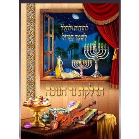To make your Menorah lighting ceremony more meaningful, hand out to all those present beautifully illustrated texts of the blessings and traditional Chanukah songs. There are cards or a booklet – in Hebrew or with English translation.