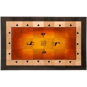 Let’s start with floor coverings. For style, color and atmosphere there is nothing like a Kakadu floor mat. We offer a huge selection of square or round mats – all made from wood and hand-crafted in the Kakadu rural studio in Israel. The colors and designs are vivid and powerful and their evocative designs will have everyone bending over to examine and admire your floor art!