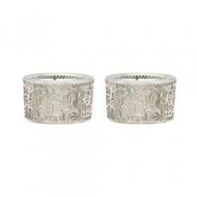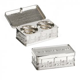 Silver Plated Small Travelling Shabbat Candlesticks in Box – Jerusalem Design$24.33 -