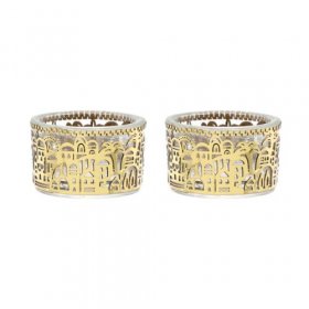 Yair Emanuel Small Candlesticks, Brass and Glass – Cutout Jerusalem Design$21.01 -