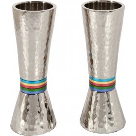 Yair Emanuel Anodized Aluminum Slender Shabbat Candlesticks - Colored BandsChoice of Colors$75.20 -