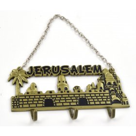Wall Key Hanger with Chain, Jerusalem Landscape - Gold and Black$11.63 -