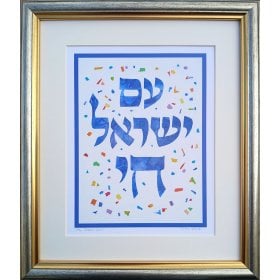 Dvora Black, Am Yisrael Chai Print of Oil Painting with Colorful Confetti - Blue$142.67 -