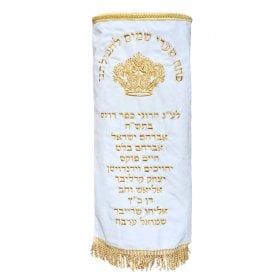 The Torah scroll is precious and valuable and is intrinsic to the identity of the Jewish People. Like a priceless diamond, it is not to be treated casually and it should certainly not be left exposed and vulnerable. Every Torah scroll that stands in the Ark is covered with a beautiful Mantle. It is removed before the Reading and returned again to cover the scroll before it is replaced in the Ark. A Mantle protects and adds beauty to the scroll and reflects our deep love and respect for the Torah.