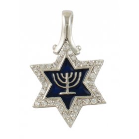Gold Filled Rhodium Plated Star of David Menorah Pendant$33.35 -