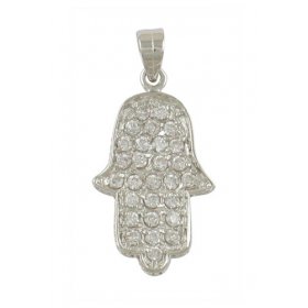 Rhodium Plated Zirconium Hamsa Pendant$22.16 -