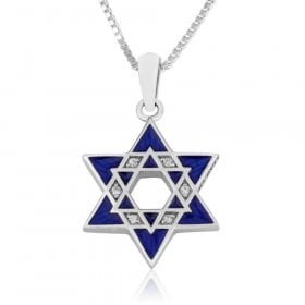 Sterling Silver Double Star of David Pendant Necklace - Blue Enamel and Crystals$58.56 - $66.22 -