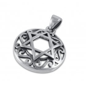 Decorative Star of David with Swirls Sterling Silver Pendant Necklace$25.55 - $33.34 -