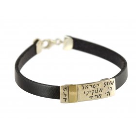 Golan Studio Men Leather Bracelet Silver Hebrew Shema Prayer & Gold Star of DavidChoice of Colors$88.57 -