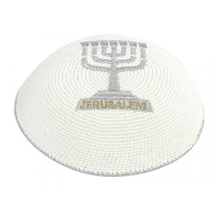 Silver & Gold Menorah Jerusalem knitted kippah$6.12 -