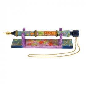 Our customers adore Yair Emanuel’s Pointers. They are bright and cheerful and bring a breath of fresh air to classic tradition. His sleek thin shapes come in a wide choice of single color or striped designs. For that special gift, we loved his wooden hand-painted Pointer resting on an exquisite display stand. If you enjoy a more ornate style, look through Yealat Chen’s Collection of Pointers decorated with colorful stones, decorative Judaica images and heavier chains. Adi Sidler offers us contemporary style Pointers designed for the boy or man who wants to be with-it without compromising tradition. For style, quality and prestige Agayof still reigns supreme. Each Pointer is a work of art. Finally, for the contemporary look, Caesarea Arts offers us a fabulous Rainbow Collection. Trendy but classic, they will inject a lively sense of color and design to the Reading of the Torah.