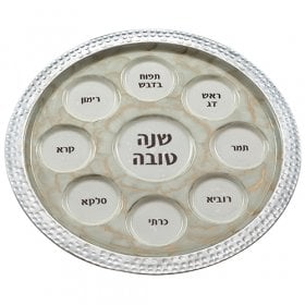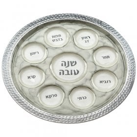 Tray for Rosh Hashanah Ritual Foods, Hammered Aluminum and Enamel - GraySize: 14.1"$64.10 -