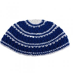 Frik Kipah - Thick Crocheted Weave of Blue and White StripesSize: 22 cm / 8.6"$5.46 -