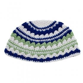 Frik Kippah Thick Weave of Crocheted White, Blue and Green Horizontal StripesSize: 9"$6.12 -