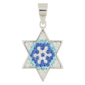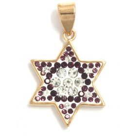 - Star of David pendants with gemstone accents like amethyst and turquoise
