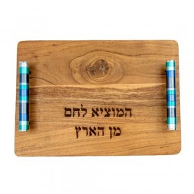 Yair Emanuel Grained Wood Challah Board, Blessings Words - Blue Handles$116.13 -