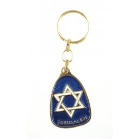 Blue and Silver Pear Shaped Keychain, Star of David - Engraved Jerusalem$3.29 -