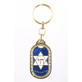 Oval Blue and Silver Keychain - Hebrew Chai in Star of David$3.29 -