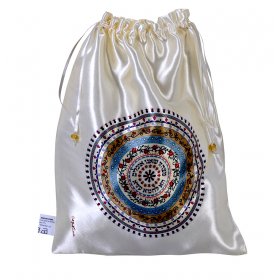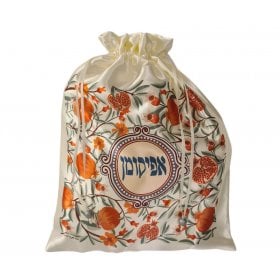 One of the high points of the Seder is when the Afikoman is hidden by the children and returned as a "bargaining chip" in return for gifts. This custom is so that the young ones will stay alert during the Seder and pay attention to the story of the holiday. These come in different shapes and materials, including terylene, silk and satin. The designer ones by Dorit come in a charming purse string bag with appropriate colorful decorations. The more traditional ones are of white satin with silver or gold color designs.Some of the designer ones are a set of matching Afikoman and Matzah cover set and make a beautiful gift for parents, bridegrooms or hostess gifts.