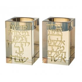 One of the items most associated with Shabbat and Holidays are candlesticks. This is the time when the Jewish woman pours her heart out in prayer, an auspicious time for her pleas, since this is one of the three Mitzvot, or commandments that the Jewish woman received and is much beloved by G-d. After the lighting ceremony, a moving prayer is recited by the mother, for the coming week, for G-d fearing children and other prayers only a mother can present. The sight of the Shabbat table graced with two gently burning candles touches our hearts and spirits, ushering in the holy day, when we spend time with our families and friends around the Shabbat table, with the glowing candles and just talk, reciting experiences from this past week, offering Torah insights, laughing and recharging our spiritual batteries. We offer the most traditional items, in materials such as pewter, nickel, ceramic, aluminium and more plus a great choice of contemporary items from favorite Israeli artists. Take, for example the Flower themed ones by Shraga Landesman, in his tribute to nature, reminiscent of the seven days of creation when all the world and it's inhabitants were created. The contemporary Agayof design utilizes vivid shades and sleek lines for an avant-garde appearance. The handcrafted pewter candlesticks by Ester Shahaf are a tribute to painstaking handwork and detailed emanel work. They are also available in folding travelling versions, all seamlessly crafted and eminently practical. Dorit Klein with her usual elegant and symmetrical design aluminium ones, which are a favorite. The classic Yair Emanuel items can be fitted into each other for a smooth rectangular shape, hand painted with Jewish themes. The filigree designs by Yealat Chen are unusual and of extremely beautiful metalwork, as is the unusual enamel on her pewter and enamel ones. Give a meaningful wedding or hostess gift with these classic Judaica items.
