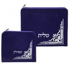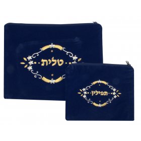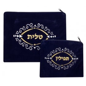 -    Navy Blue Velvet Tallit and Tefillin Bag Set - Silver Embroidery in Corner$28.76 Navy Blue Velvet Tallit and Tefillin Bag Set - Silver Embroidery in Corner$28.76