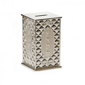 Lacquered Silver Plate Tzedakah box with Diamond Design$43.13 -