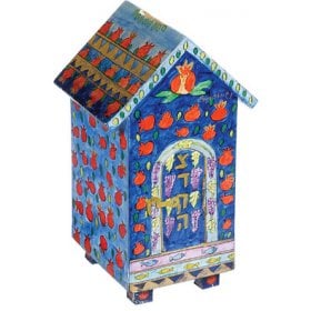 Yair Emanuel Blue House-Shaped Wood Tzedakah Charity Box - PomegranatesHeight: 7"$63.46 -