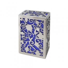 Yair Emanuel Charity Box, Cutout Pomegranates and Word Tzedakah – Silver and Blue$54.19 -