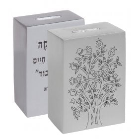 Yair Emanuel Charity Box, Cutout Pomegranates and Word Tzedakah – Silver and Gray$54.19 -