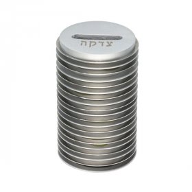 For contemporary style tzedakah boxes to blend with your home decor, enjoy Shraga Landesman’s elegant box that intriguingly rocks back and forth as you drop in the coins. Exclusive Agayof displays a cutout Tree of Life on his magnificent charity box. A favorite in the collection is Adi Sidler’s contemporary style charity box with slits in the Hebrew word Tzedakah for dropping in the coins. Benny Dabach also brings vibrant contemporary designs. All these come in a choice of bright metallic colors, perfect if you wish to match your color scheme.