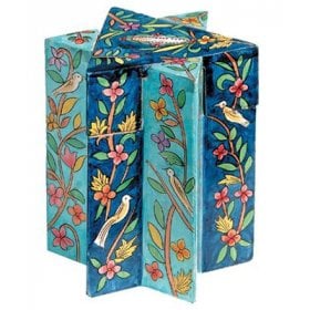 Yair Emanuel Star of David Wood Charity Tzedakah Box - Birds Floral, BlueHeight: 5"$58.62 -