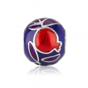 Sterling Silver Bracelet Charm - Enamel Red Pomegranate with Leaves on Blue$70.14 -