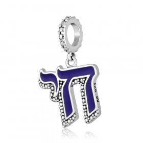 Sterling Silver Bracelet Charm, Textured - Blue Enamel Chai Letters$47.81 -