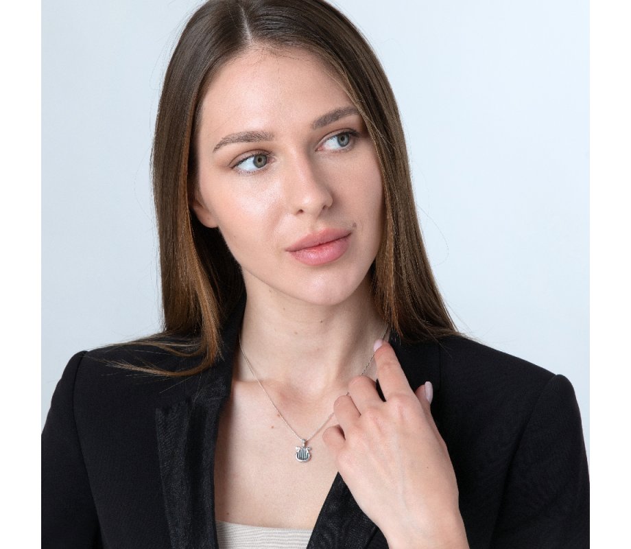 Sterling Silver Pendant Necklace, King David's Harp - Eilat Stone