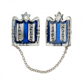 Pewter Tallit Prayer Shawl Clips – Star of David on Blue Enamel in Tablet FrameSize: 2.8"$13.36 -