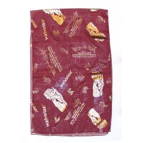 Womans Head Scarf Gold Jerusalem Images with Dove, Lion & Psalm Verse – Maroon$20.04 -