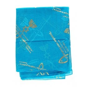 Woman's Head Scarf with Menorah, Star of David & Fish Design - Blue or Turquoise$20.04 -