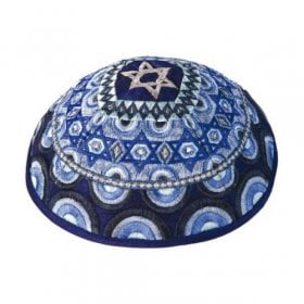 Yair Emanuel Embroidered Kippah Large Star of David and Circular Bands - Blue$12.84 -