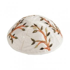 Yair Emanuel Embroidered Kippah, Tree of Life - Gold and Green Shades on White$12.84 -