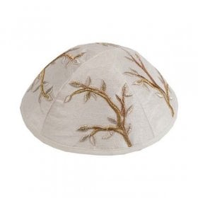 Yair Emanuel Embroidered Kippah, Tree of Life Design - Gold and Silver on Cream$12.84 -