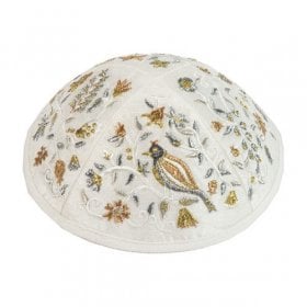 Yair Emanuel Kippah, Embroidered Birds and Flowers - Gold and Silver$12.84 -