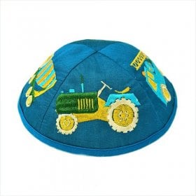 Yair Emanuel Kippah for Children Embroidered Colored Trucks on Blue$10.39 -