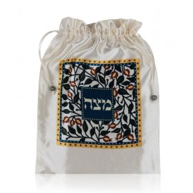 One of the high points of the Seder is when the Afikoman is hidden by the children and returned as a "bargaining chip" in return for gifts. This custom is so that the young ones will stay alert during the Seder and pay attention to the story of the holiday. These come in different shapes and materials, including terylene, silk and satin. The designer ones by Dorit come in a charming purse string bag with appropriate colorful decorations. The more traditional ones are of white satin with silver or gold color designs.Some of the designer ones are a set of matching Afikoman and Matzah cover set and make a beautiful gift for parents, bridegrooms or hostess gifts.