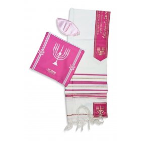Ateret Acrylic Tallit Set, Pink Stripes on White, Star of David and Menorah Motif$42.03 - $59.72 -