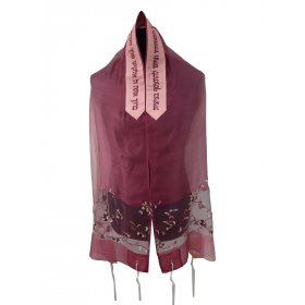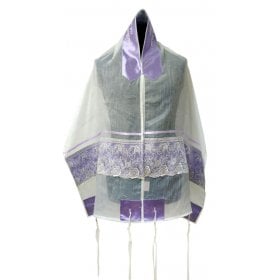 Ronit Gur Tallit Prayer Shawl Set, Organza with Violet Floral Lace Decoration$225.62FREE shipping -