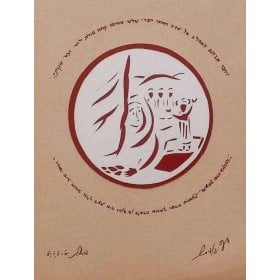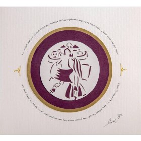 She has a great admiration and love for Biblical figures, especially women and these play a central role in her art. Using intricate paper cut techniques and delicate colors, she highlights the inner strength of the Jewish woman, re-creating images of Ruth, Channah, Miriam, Esther and Sarah and decorating them with Bible quotations that convey the joy and power of faith and Jewish identity.