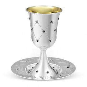 Sterling Silver Kiddush Goblet with Matching Plate - Diamond Flower Design$279.99 - $560.00 -